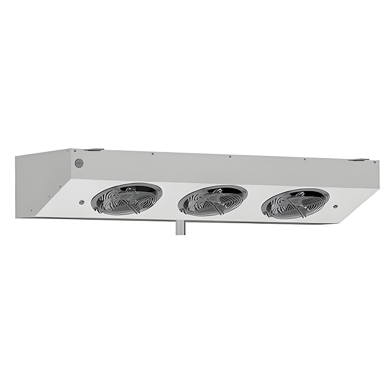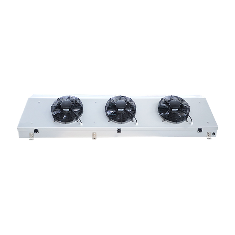 Angle type air coolers are suitable for cooling equipment with limited installation size inside the warehouse. They can be used to blow air from the single-sided fin side or from the inclined end motor side, in two ways.