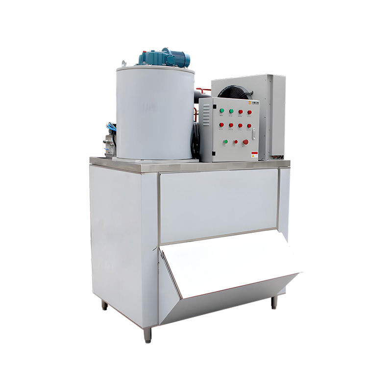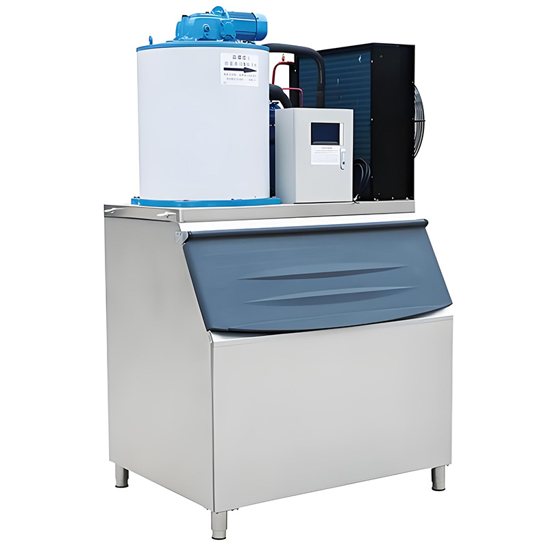 Ice making machine is an efficient and professional ice making equipment, with the core feature of producing thin sheet ice with a thickness between 1.0 and 2.5 millimeters. This type of ice has a dry and soft texture, appearing as irregular small flakes with a large contact surface area. It consists of an evaporator, refrigeration system, water supply system, and ice cutting mechanism. Water is sprayed onto the surface of the low-temperature evaporator to form an ice layer, which is then scraped into pieces of ice by rotating blades. Due to its fast cooling speed, easy mixing with other materials, and strong plasticity, sliced ice is widely used in various fields such as seafood preservation, food processing, chemical cooling, concrete cooling, supermarket fresh display, and catering industry (such as sashimi plating, chilled beverages). It is an indispensable cooling medium in modern industry and commerce.