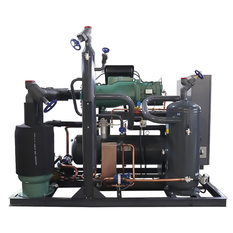 The screw condensing unit is a core device of an efficient and stable refrigeration system, primarily composed of a screw compressor, condenser, expansion valve, and evaporator. It utilizes the principle of dual-rotor meshing in the screw compressor to achieve gas compression, featuring a compact structure, high energy efficiency ratio, long lifespan, and a wide load adjustment range. Utilizing environmentally friendly refrigerants such as R22 and R134a, it is widely applied in industrial refrigeration (such as cold chain logistics, food processing, and chemical processes) and large central air conditioning systems. Through forced heat dissipation condensation technology, it achieves rapid heat exchange. Coupled with an intelligent control system, it can precisely adjust the cooling capacity and energy consumption. Capable of operating in a wide temperature range from -40°C to 45°C, it is an ideal solution for continuous high-load refrigeration scenarios.