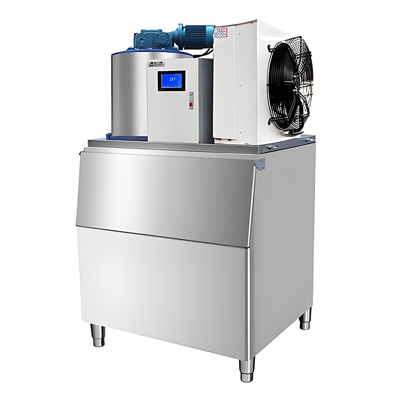 Ice making machine is an efficient and professional ice making equipment, with the core feature of producing thin sheet ice with a thickness between 1.0 and 2.5 millimeters. This type of ice has a dry and soft texture, appearing as irregular small flakes with a large contact surface area. It consists of an evaporator, refrigeration system, water supply system, and ice cutting mechanism. Water is sprayed onto the surface of the low-temperature evaporator to form an ice layer, which is then scraped into pieces of ice by rotating blades. Due to its fast cooling speed, easy mixing with other materials, and strong plasticity, sliced ice is widely used in various fields such as seafood preservation, food processing, chemical cooling, concrete cooling, supermarket fresh display, and catering industry (such as sashimi plating, chilled beverages). It is an indispensable cooling medium in modern industry and commerce.
