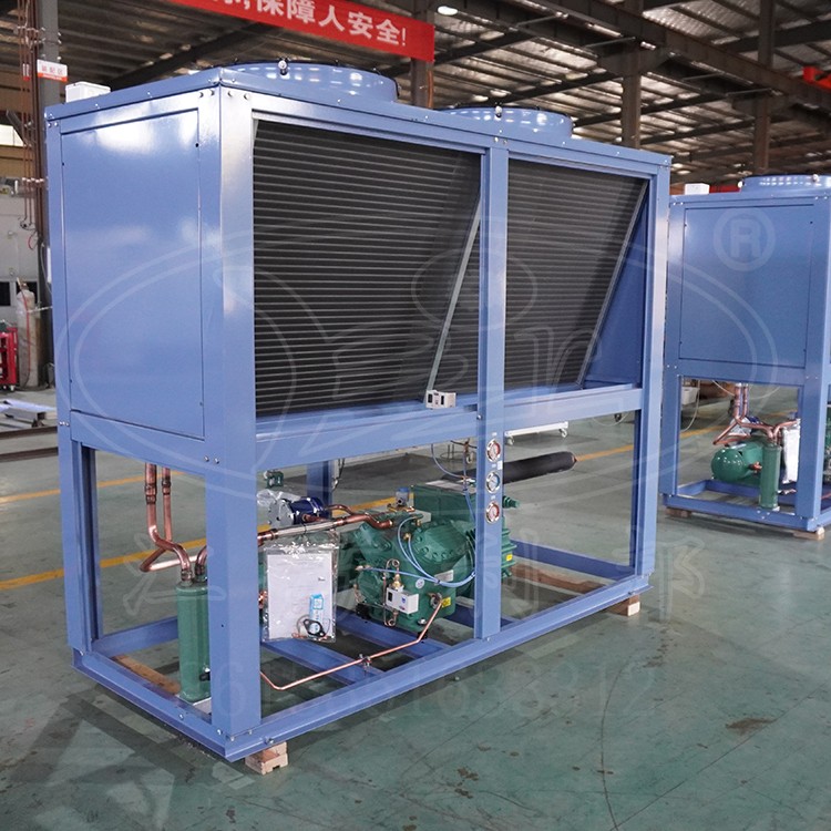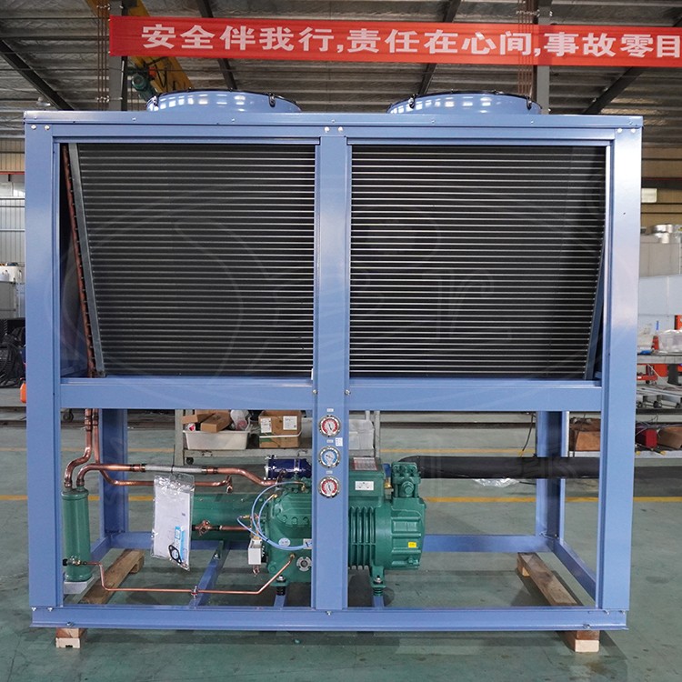 The semi-hermetic refrigeration unit is a highly integrated refrigeration device that combines a compressor, condenser, evaporator, and control system within a sealed or semi-sealed enclosure, offering both compactness and high efficiency. Its semi-hermetic structure facilitates maintenance and repair while reducing the risk of refrigerant leakage, making it suitable for small and medium-sized commercial settings such as convenience stores, laboratories, and medical cold storage. Equipped with scroll or piston compressors, coupled with air-cooled/water-cooled heat dissipation, it supports environmentally friendly refrigerants such as R404A and R134a. It features intelligent temperature control, fault alarms, and other functions, with a coefficient of performance (COP) up to 3.0 or higher. It offers wide temperature range regulation from -40°C to 10°C, meeting precise temperature control requirements. Typical models, such as the 5HP unit, have a cooling capacity of approximately 14kW and a noise level of ≤65dB, making them suitable for spaces where stability is required despite limited space.